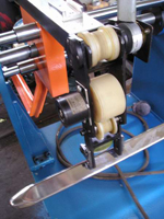 選用本公司產(chǎn)永磁制動(dòng)器MB-2,配合尼龍制定徑壓輪,產(chǎn)生恒定收卷張力。